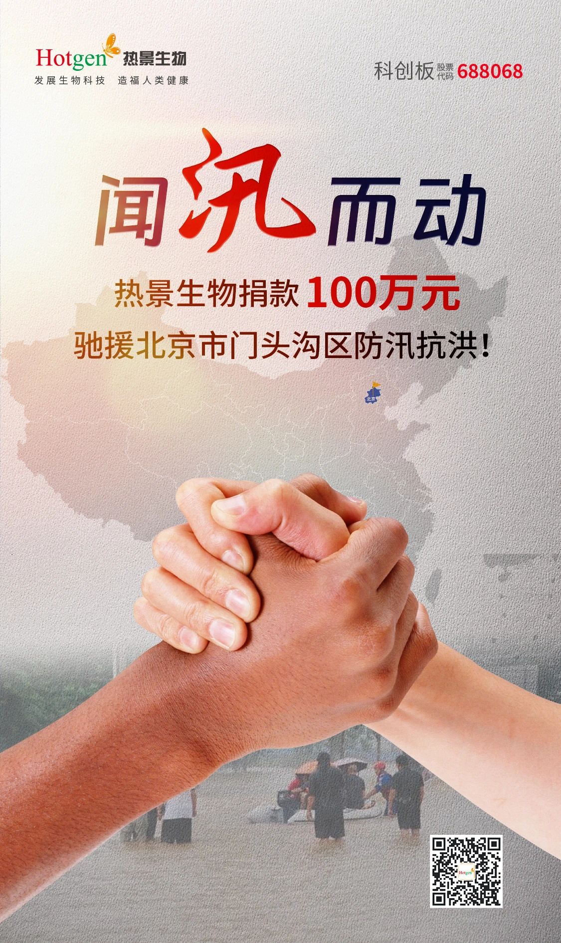熱景生物一直密切關(guān)注著汛情救援進(jìn)展,主動(dòng)聯(lián)系相關(guān)部門(mén)提供支援幫助,并向北京市門(mén)頭溝區(qū)紅十字會(huì)捐贈(zèng)100萬(wàn)元防汛抗洪資金,助力當(dāng)?shù)卣蜕鐣?huì)力量抗擊災(zāi)情。