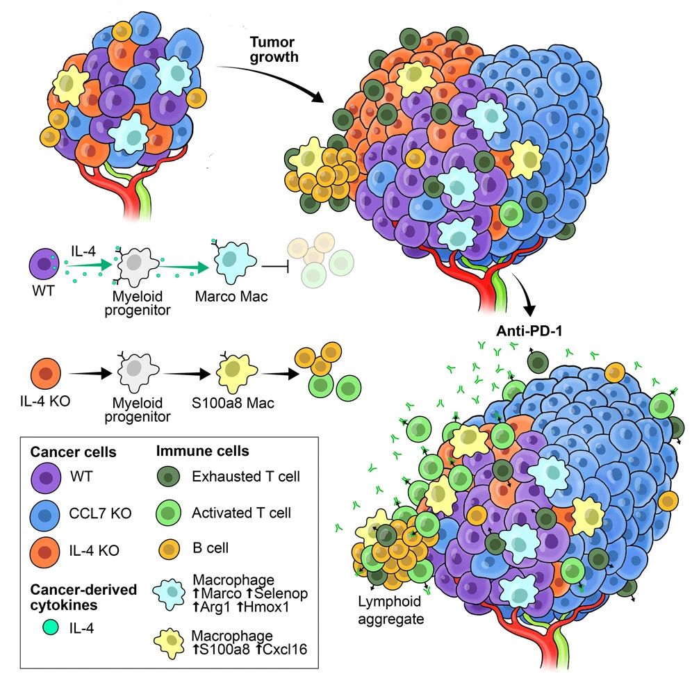 “令人驚訝的是,即使在含有產(chǎn)生il -4的癌細胞的腫瘤中混合,缺乏il -4的癌細胞也被免疫系統(tǒng)消除,這種現(xiàn)象稱為腫瘤內(nèi)異質性,這也有助于癌癥的耐藥性,”Brown博士說,他是西奈山基因工程教授和該研究的高級作者。