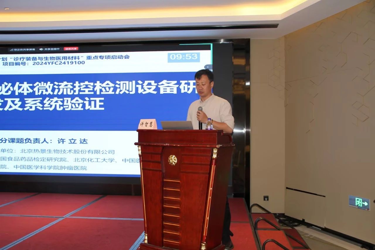 5月16日,國家重點(diǎn)研發(fā)計(jì)劃“診療裝備與生物醫(yī)用材料”重點(diǎn)專項(xiàng) “疾病特異性外泌體檢測技術(shù)研究及樣機(jī)研制”項(xiàng)目啟動(dòng)會(huì)在廣州召開。項(xiàng)目由南方醫(yī)科大學(xué)南方醫(yī)院牽頭、聯(lián)合中國醫(yī)學(xué)科學(xué)院北京協(xié)和醫(yī)院、中國醫(yī)學(xué)科學(xué)院腫瘤醫(yī)院、北京化工大學(xué)、北京熱景生物技術(shù)股份有限公司等單位共同承擔(dān)。項(xiàng)目及各子課題負(fù)責(zé)人對課題實(shí)施方案及近期進(jìn)展進(jìn)行匯報(bào),認(rèn)真聽取指導(dǎo)專家的意見和建議。
