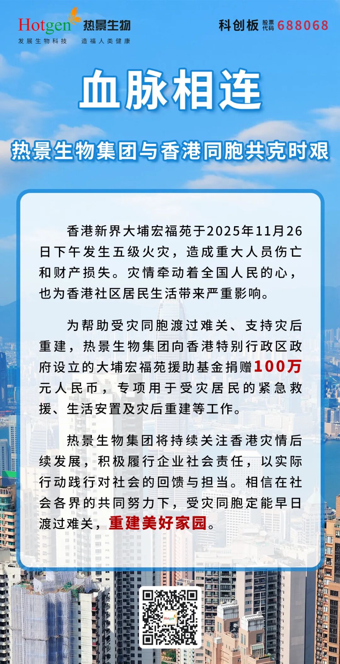 血脈相連,熱景生物集團(tuán)與香港同胞共克時艱